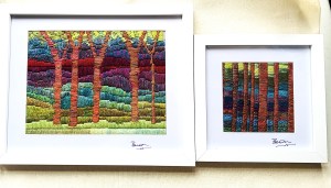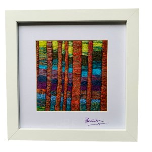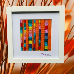 Inspired by artworks on Pinterest, I stitched these increasingly abstract works in September – October 2024. I’m happy to accept commissions for works like these in colours to match your decor.