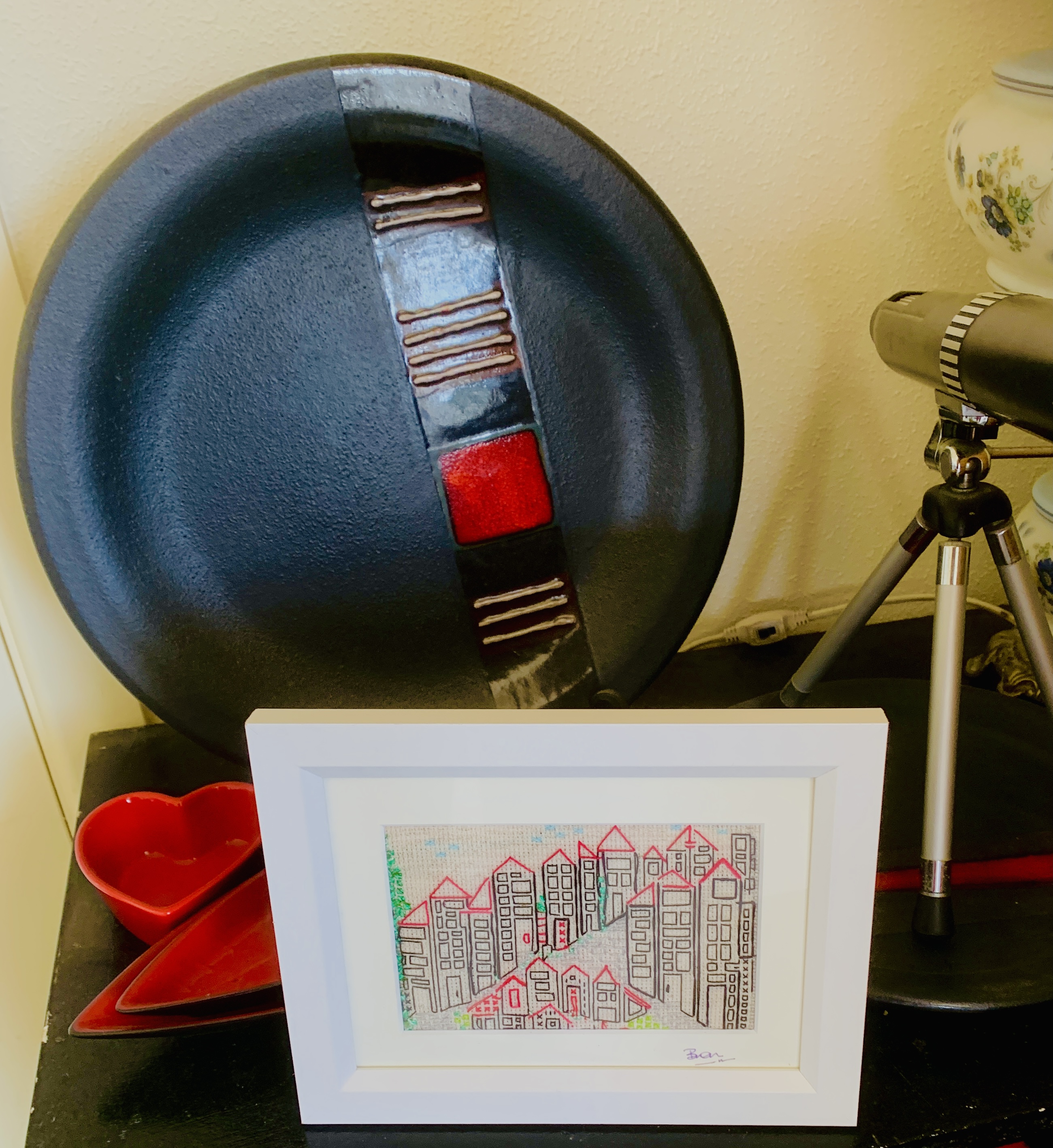 I’m very pleased with the large “Black and Red Village” (feature image), and have made several smaller, similar works, including “Little Red House”, “Little Black and Red Village”, and “Red and Black Village with gardens” (sold).