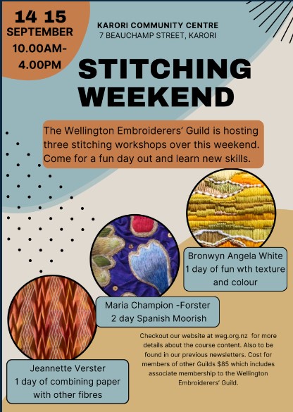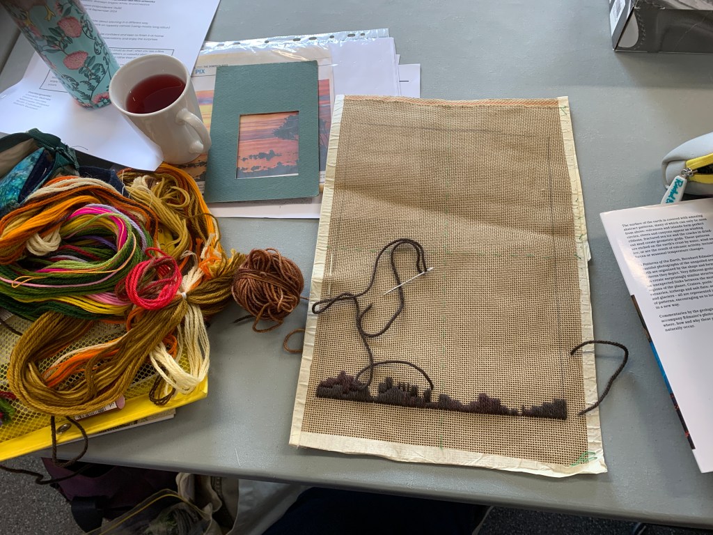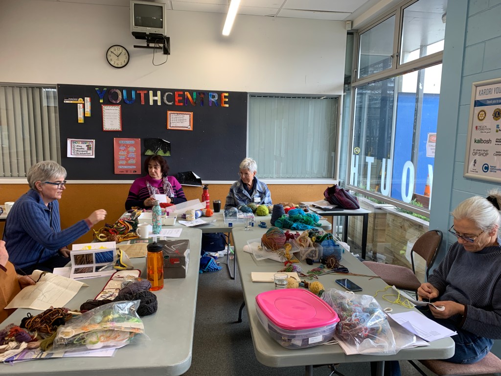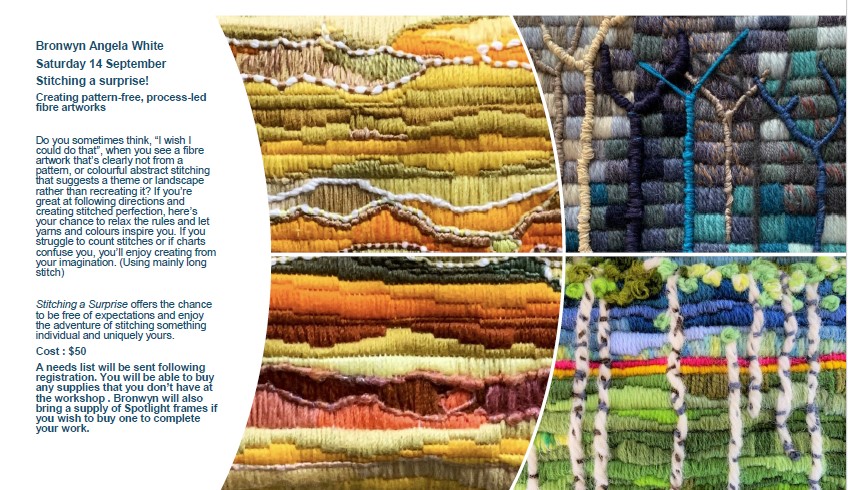 Earlier in the year, Wellington Embroiderers’ Guild contacted me with an invitation to facilitate a stitching workshop. After some emailing back and forth and a meeting to discuss how a workshop on unplanned stitching might be structured, it was a pleasure to facilitate my “Stitching a Surprise” workshop in September 2024.